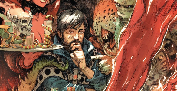 • I agree about the card game, which was definitely the one sour note of the issue for me — with no real idea of what game they’re playing or how to play it, it falls a bit flat. I’m also not sure how Strange expected to cheat with talking cards, nor how confident he actually was in winning before he cheated. Why gamble on something as arbitrary as a card game?