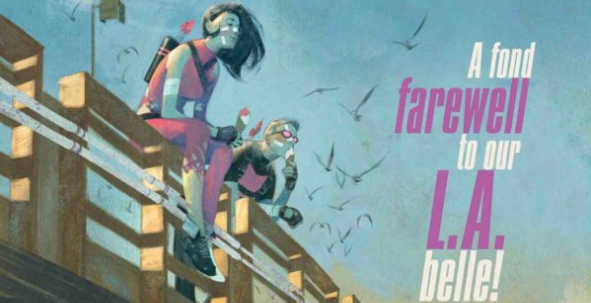 Patrick: How do you know where to look? I’m asking a holistic question here. When you’re walking down the street, what draws your eye? When you’re deciding what to do next with your life, how do you decide what people and what activities are of value to you? Maybe we’re following signs, or bright lights, or that warm feeling of belonging. It’s something. Hawkeye 16 shows both Kate and Eden coming to terms with what they’ve been looking for, all while Kelly Thompson and Leonardo Romero expertly show the reader where to look.