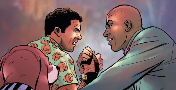I know this is hypocritical immediately following a spoiler alert, but I don’t believe in spoilers. They’re something I respect because I know other people believe in them (like God), but the threat of a spoiler doesn’t change the articles I will read or the conversations I’ll have (huh, also like God). If a movie or tv show or book is so slight as to have the experience of it ruined by simply knowing what’s going to happen, it probably wasn’t worth experiencing in the first place. The Fix 11 starts with a seismic shift, fully acknowledging the trope that Nick Spencer and Steve Lieber are subverting for shock value. “Surprise” reads the narration box. But the surprise isn’t the point, the fall-out from the surprise is.