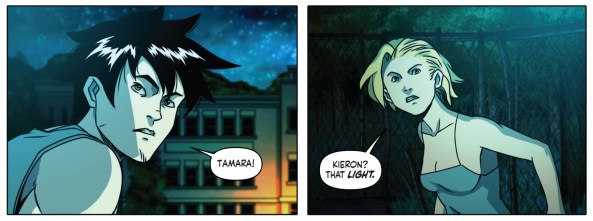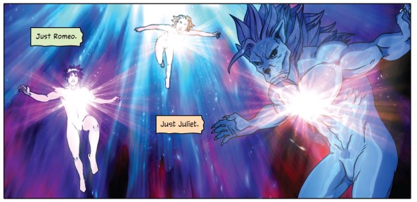 And since there’s no shortage of manga and anime influences, how easily Betrothed 1 goes down will depend on your familiarity/tolerance for the specific breed of adolescent fantasy it’s selling. The breakneck pace of the issue leaves precious little time for explanations of who characters are or what motivates them outside of the broadest generalizations — exposition boils down to hoary nuggets like “It’s meant for us, isn’t it?” and “It was a promise made long ago”. Bethrothed 1 aims to dazzle rather than engage.