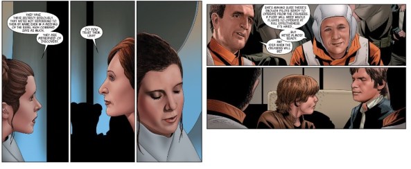 This issue very much has the feeling of being a placeholder. It has parallel story lines – one where Luke and Han go out for a drink and another where Leia proposes a new plan to the Rebel high command. Both stories are pretty forgettable and Kieron Gillen’s writing in this issue seems lackadaisical at best. Take, for instance, the reveal of Leia’s new plan to her bosses.