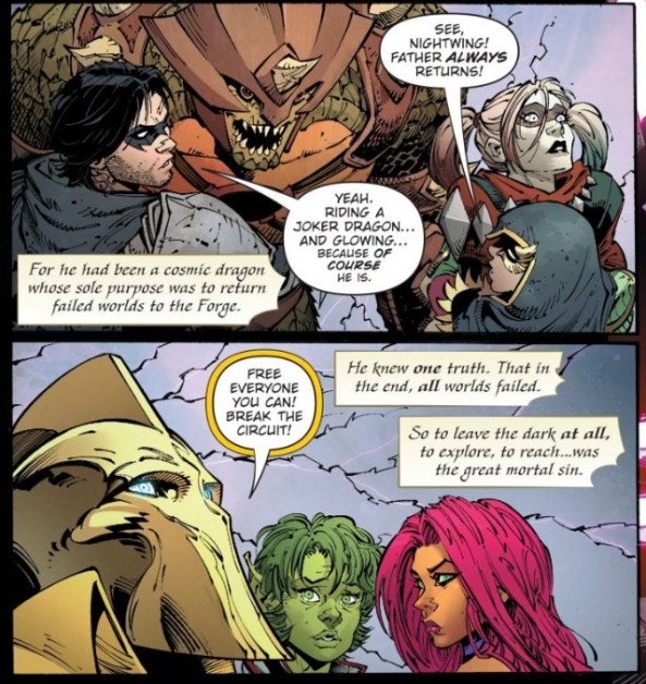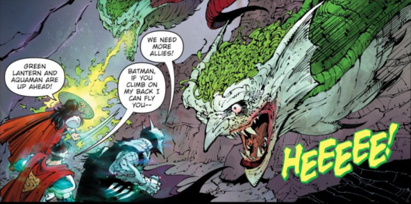 We were dwelling heavily in the multiversal realm and suddenly our heroes break through the Source Wall- in one panel no less. It’s to set up Snyder’s “No Justice” but it feels like a plot point that comes out of nowhere and has little or nothing to do with the conflict at hand. It would be like if we were telling a Batman story in Gotham that somehow suddenly ended with an alien turf war on Daxam. Just…what was this book?