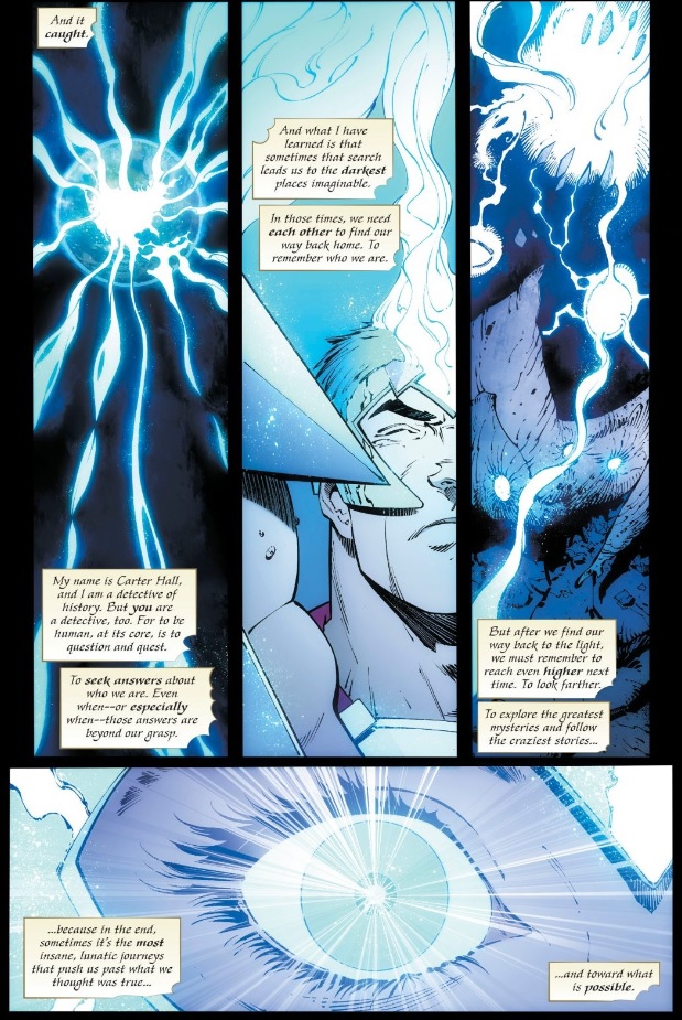 I think we’re all tired of talking about The Last Jedi at this point, but one of things I really admired about Rian Johnson’s midquel is how it sets up Episode IX with the opportunity to be something new while still operating within the larger framework of the Star Wars universe. Snyder pulls a similar move here, honoring DC’s characters and legacy while also cracking open the world to allow for new stories. Like you said, Spencer, who knows if the attempt will ultimately be successful, but it’s admirable to try at all, especially as DC’s other big event comic, Doomsday Clock, works to hasten the snake eating its tail.