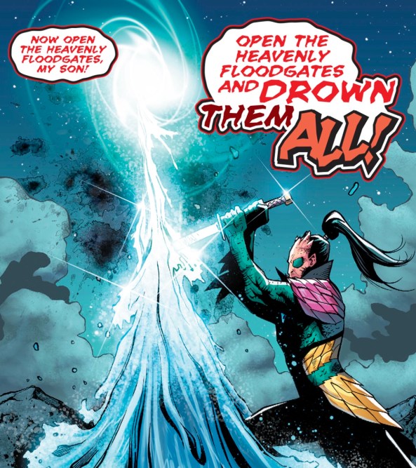 Ahn Kwang-Jo, aka the Aqua-Man of North Korea, aka Dragonson, is so conditioned by his life under the authoritarian regime of North Korea to accept the word of authority figures as truth that when the old sea dragon bones responsible for his powers commands him to generate a flood large enough to kill millions of his countrymen, Kwang-Jo feels compelled to obey. He’s briefly conflicted, but his resistance is met with anger by his “true father”, and Kwang-Jo quickly acquiesces.
