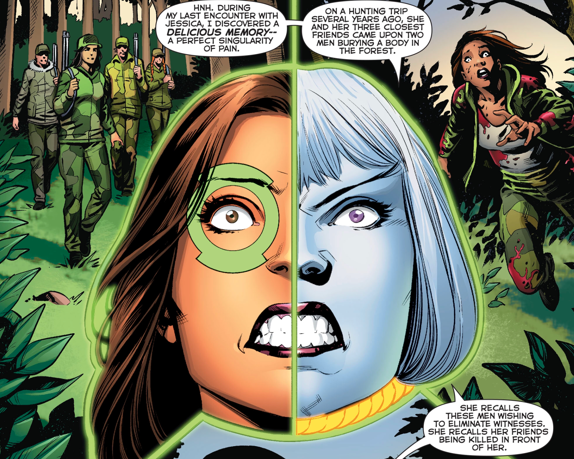 With Green Lanterns 45, Tim Seeley and Ronan Cliquet begin to dive into Jessica Cruz’s past with the goal of explaining why The Ring of Volthoom was drawn to her trauma in the first place — the worst hunting trip in the world.