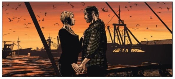 We see some of that normalcy at the end of the issue between Jonah and Pernille. Even though Jonah’s history remains a big question mark to her and her family, Pernille falls in love with this man she took in. What results is a very beautiful scene of emotional and physical intimacy. And sex scenes are difficult to do well, let’s be honest. A certain amount of artistic rigor is required to make a scene like this really work, and it works beautifully. The two find themselves back on the same bench, naked and vulnerable, where Pernille first lay with Jonah, sharing her body heat with him to save his life from hypothermia, now sharing more with him, perhaps trying to save his life again by pulling him away from his history as a major player in the wars between houses.