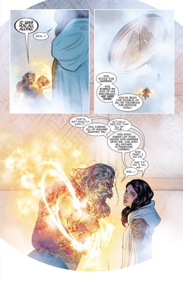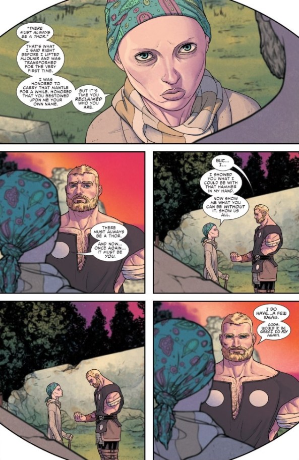 But I think this one works. It isn’t a reset, because it is the payoff of Aaron’s work. Things don’t go back to the way they were. Because that ignores how Jane’s changed the gods of Asgard. How she’s changed Odin. Things haven’t gone backwards, because ultimately the ending of this issue is forward thinking.