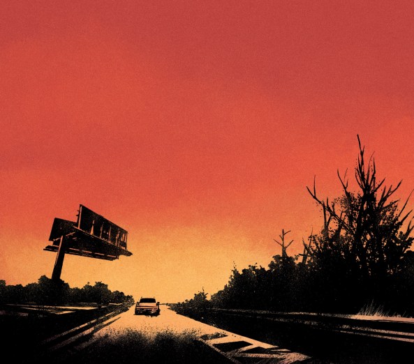 It’s a surprisingly domestic issue of Days of Hate, as both Huian and Arvid head home to visit their families. Žeželj’s artwork is usually impressively ugly, perfectly embodying the themes of this series, but this issue finds him in a much more poetic mood. Zezelj frequently drops his camera to the floor and zooms way out in this issue, showing the fullness of the beauty of the twin settings for this issue: Huian’s house in upstate New York and Arvid’s home in Kansas City, Missouri. It’s stunning stuff, evoking a kind of used-urbanity, and drawing beauty from decrepitude.
