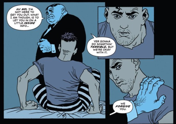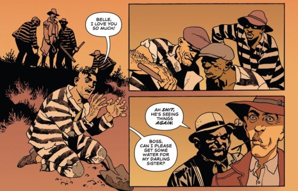 Patrick, I’d say it’s fair to think Azzarello and Risso are acting more like the devil here, at least for now, but I’m curious to hear your take. I’m also excited to hear how you think Lou’s story fits in with all of this, whether his flashback, is delusions, or his misadventures on the chain gang. Are these unequivocal, direct bad things, or secret, mysterious good ones?