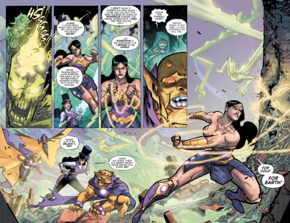 It also keeps No Justice feeling character based even when it’s obviously very tightly plotted. Snyder, Tynion, and Williamson have a very obvious path they’re following, but they make sure that every character has a unique voice and role in their story, and that their choices drive the story forward through its preordained path. Again, I’m impressed by the balance.