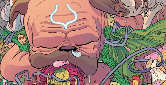 While Kibblesmith continues to use Dennis as Lockjaw’s mouthpiece, this time his announcement is a declaration of Lockjaw’s agency, a reminder that in this story, Lockjaw is not a pet nor a sidekick, but the hero. It isn’t just a move that allows Lockjaw to claim a heroic victory over Annihilus; it’s one that provides some clarity for Dennis as well. Despite transforming into a dragon (long story) to help Lockjaw battle Annihilus, Dennis is still not the hero of this story, and in the end, it’s a relief to him that he doesn’t have to be.