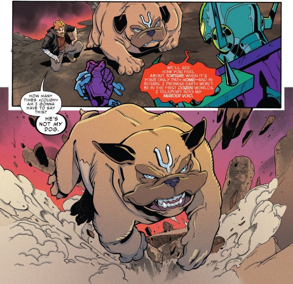 Lockjaw is a pet, Black Bolt’s (and sometimes Ms. Marvel’s) faithful companion, so often a sidekick in their adventures. Daniel Kibblesmith and Carlos Villa’s Lockjaw miniseries has provided a chance for the teleporting canine to step into the spotlight and become the hero of his own story, a fact that takes center stage in the series finale.