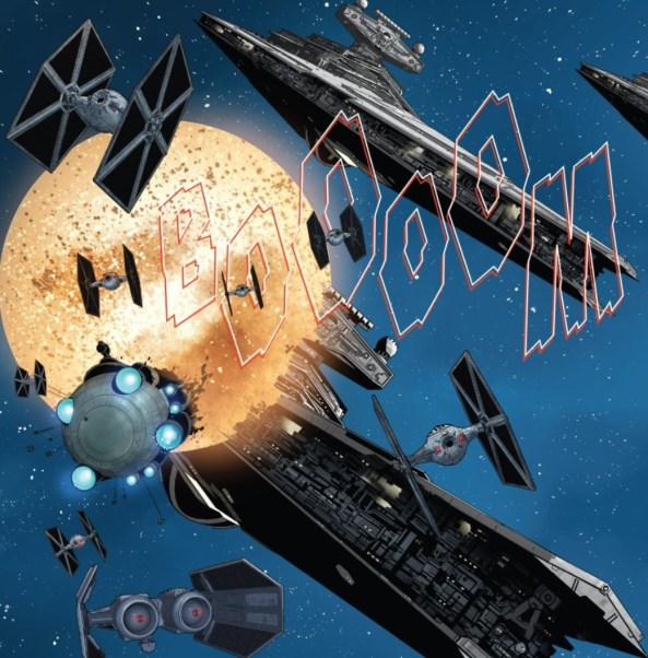 That’s not the fault of Larroca or Gillen though, it just happens to be a limitation of the medium. But signing on to create a Star Wars product means you run the risk of not getting things exactly right, such as this space battle. Growing up, I connected to the space battles mightily, unlike you Patrick. Having played the TIE Fighter and X-Wing on my PC as a kid, I got to experience first hand (sort of) the thrills of flying through space and blowing shit up. That means I know the sounds and looks of these famous ships by heart, and when that’s the case, anything less that the original thing is hard to to accept.