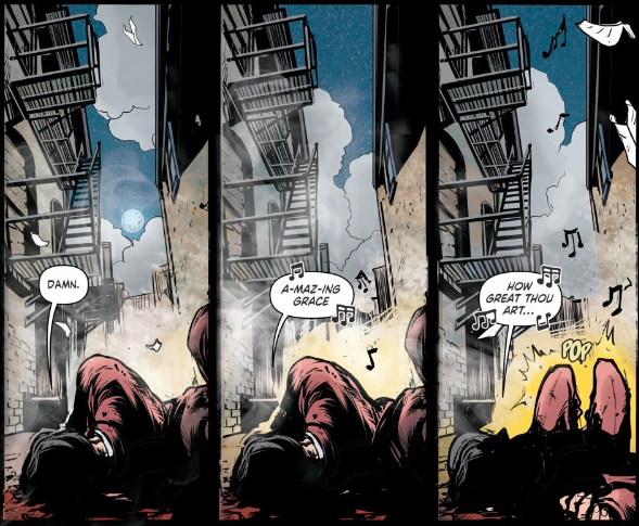 What is more frustrating, however, is that flashback/dream sequence that Spencer already mentioned. I’m scratching my head on this one, folks. I tried to give that whole sequence the benefit of the doubt, but it just doesn’t line up. This doesn’t seem to be the case of “unreliable narrator” — if that was the case, this epiphany dream would’ve come later or changed Eel’s mind by the end of the issue. But as Spencer said, it doesn’t. I think that this is just a plain mistake on Malo’s part.