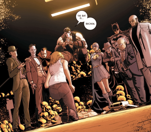 As hot/cold as I can be with King’s Batman I have gone on the record on how much I love his take on Bane. Presumably Bane has been manipulating other events from behind the scenes, but orchestrating the destruction of Batman’s wedding day is a whole new “Break the Bat.”