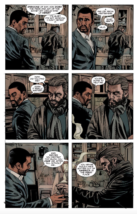 So it’s no surprise that by the end of the issue Harriet is insolently thwarting her mother’s plans to not-nuke America, while Vil and Ellis are surviving impossible odds against a squad of Russian goons. Mooney has more than made the case that only one of these teams work.