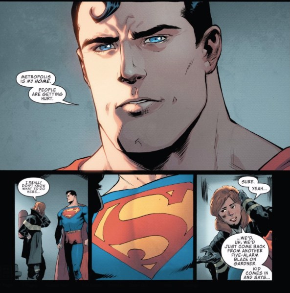 These two panels might as well be Brian Michael Bendis and Patrick Gleason’s thesis for Action Comics.
