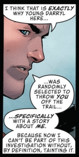 This remains a theme throughout the rest of Action 1001 as well. Though the thread from DC Nation 0 isn’t explicitly referenced, it’s implied that Robinson Goode is still acting as a spy at the Daily Planet, gathering information for an outside party. Trish Q, meanwhile, has her own credo for how to use information, even one’s own personal secrets, and she’s not shy in sharing it.