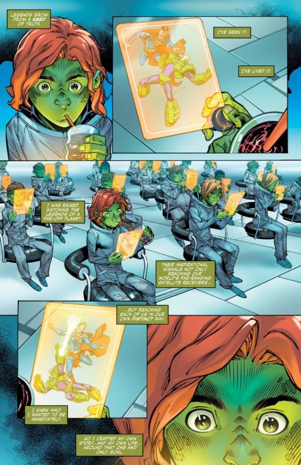 There’s probably a cautionary tale to be told here about relying too much on media to educate and guide our children, but Peter Tomasi and Carlo Barberi don’t learn too hard into it. In fact, Joker Jr. later says that their entire culture is designed to celebrate Earth and its heroes — for whatever reason, Rex Luthor just doesn’t see it that way.