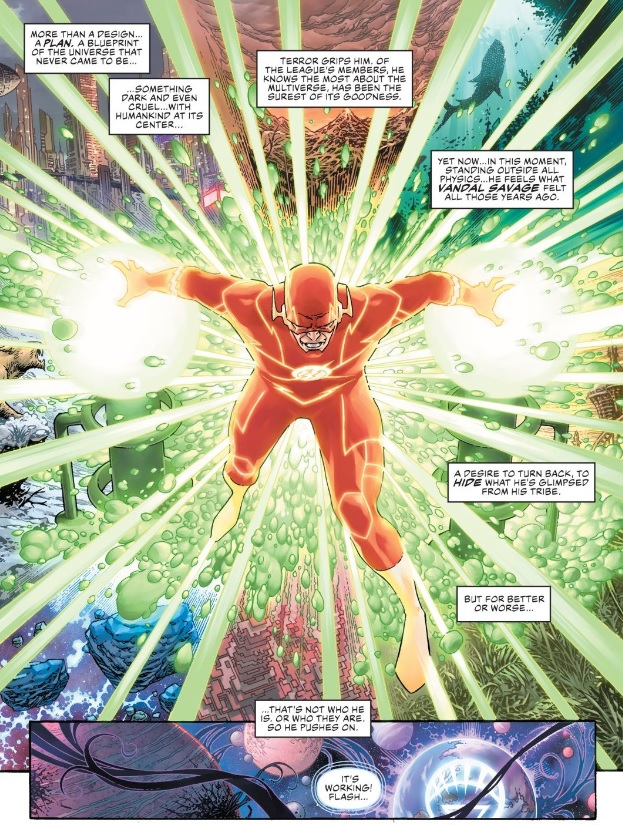 The Flash, though, is a much more hopeful, honest, and open person. He shares what he learned with his friends, because that kind of knowledge is a burden that should not be bore alone, and together they come to the conclusion that, even if the universe and all of mankind are meant to be dark and twisted, even if they’re standing in the way of the natural order of things, they’ll continue to stand for the ideas of justice, peace, and freedom, because that’s just who they are.