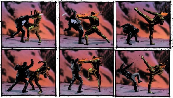 I love this kind of stuff. Forcing the reader to pay attention to individual blows in this fight really centers the narrative on Frank’s actions, rather than his abstract “mission.”