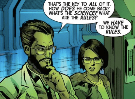 Clive brings up a key tenant of any good science fiction story: “what are the rules?” Superman is powered by the sun and weakened by Kryptonite, there is some made up science behind it but that is the basic rule. How does the Hulk survive all that he endures? How do his individual body parts still function when they are detached? It turns out that Hulk is as curious as we all are.