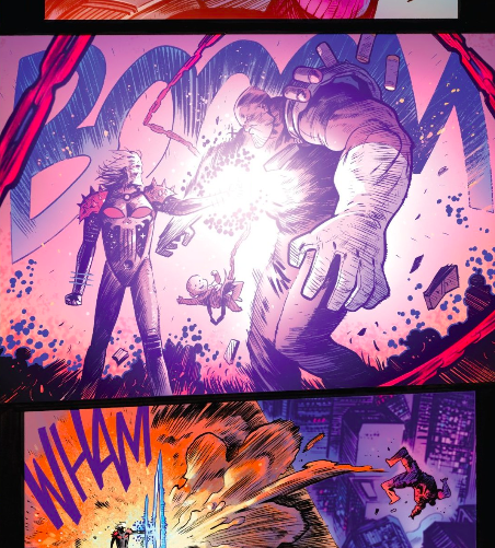 Again, check out that obliterated gutter on that first panel. This is just Frank showing off a strength he’s evidently always had, the power to kill Thanos.