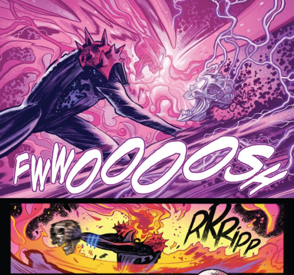 Patrick: What makes an audience try to see heroism in their anti-heroes? We all try to do it. No matter what Don Draper does, no matter who he hurts, we want to believe that there is some kind of moral or narrative victory in him achieving his goals. Is that just how we relate to protagonists? Or is the protagonists’ own buried desire to be good, to be morally right, more compelling than the villainous actions we see them undertake? Donny Cates and Dylan Burnett’s Cosmic Ghost Rider 5 sees the titular character making a heroic stand at the end of a failed timeline, but ultimately confirms what we should have known all along: Frank Castle ain’t no hero.