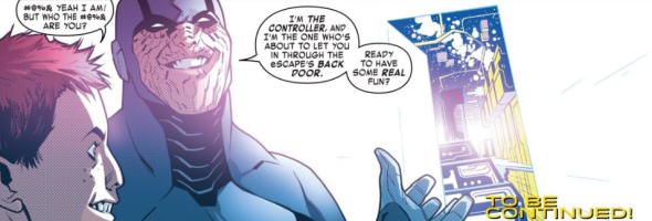 Dan Slott crafts a clever analogue for the hazardous landscape that is online social interactions, and the trolls within them. By the end of the issue, he has also poised one of these trolls to become a future thorn in Tony’s side. The Controller recruits the young boy who was ousted from eScape to his battle with Tony Stark.