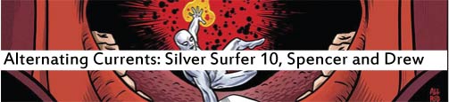 Drew: To say that Dan Slott, Michael Allred, and Laura Allred delight in the formal aspects of comics would be a profound understatement. The most indicative example must be issue 11 of the previous volume, which featured a kind of Möbius strip that readers had to consciously break out of. It’s the kind of innovation that might feel gimmicky to the passerby, but on closer inspection is so closely tied to the content of the story, it’s almost impossible to imagine it being handled any other way. In that case, Norrin and Dawn were stuck in a time loop, so the closed loop of the layout was essential to making that point literal. This issue finds Dawn stuck in time in a very different way, and the creative team manages to find a different technique to capture her stasis. Continue reading